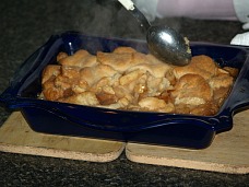 If you know how to make the apple pandowdy recipe, it is basically apples and maybe sugar and spices in the bottom of the dish or pan. The top is covered with some form of dough like thick pie or pastry dough or even shortcake biscuit recipe for the dough. This is then baked until the dough is done and browned producing a wonderful apple dessert or even apple snack. The type of dough also has no bearing on what makes this dessert a “pandowdy”.
