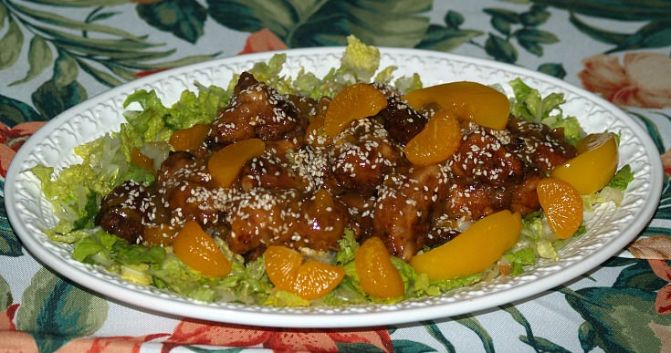 Learn how to make sesame chicken with flavorful Mandarin orange peach sauce.