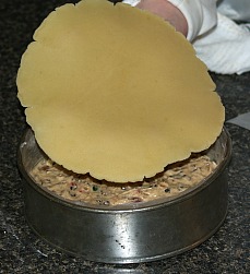 Place remaining another can of almond paste between 2 sheets of waxed paper and roll to an 8 inch circle.