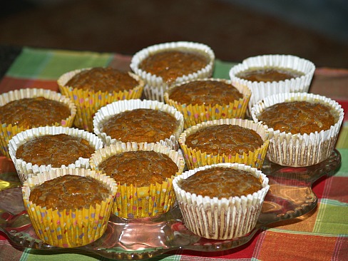 I decided to make the carrot cake recipe in giant muffins this time round; mainly because I was in a hurry to get them baked. I decided to eliminate a few more calories by using a little fresh orange juice instead of the glaze on top of the muffins.