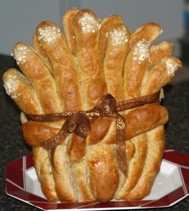 Another very good and very pretty holiday bread recipe that I like comes from Sweden. It is called St Lucia’s wreath named for St Lucia Day in Sweden; it is celebrated on December 13. As the story was told by the monks, St Lucia was a young Christian girl who secretly fed Christians who were being persecuted. This holiday bread recipe is made to celebrate the beginning of the Christmas season.