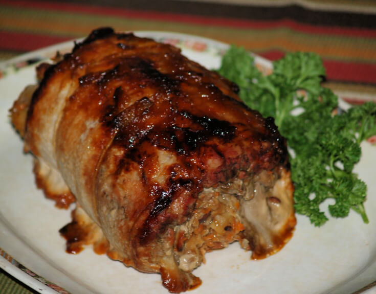Cut a slit in the loin lengthwise to ¼ inch at bottom.