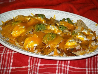 Make delicious nachos recipes: guacamole recipe, hamburger nachos, nachos con huevos, popcorn nachos, shrimp nachos, tuna nachos, easy nachos, canned cheese nachos, chicken nachos, nachos with white cheese and Chipotle bell pepper nachos. |