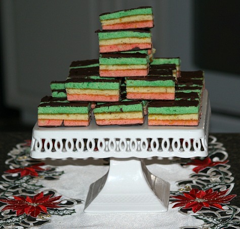 Each year, I started my baking the weekend of Thanksgiving and I did not stop until Christmas. Yes, a lot of work but I loved every minute of it. I always had a plate waiting for visiting guests when they arrived to sample the day’s production. A few days before Christmas I would box them up and put pretty bows on the boxes. I would save one large tray to freeze for New Year’s Eve. After boxing, I would set out to deliver the boxes of cookies to family and friends. They all enjoyed these homemade cookies better than any gift.